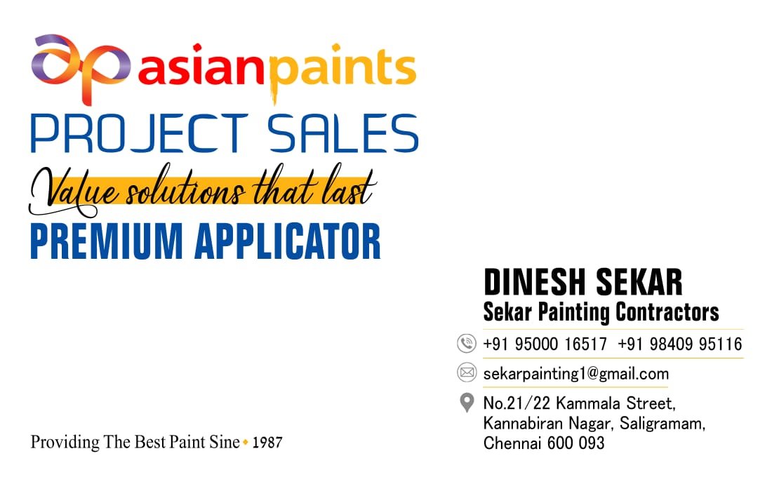 Sekar Painting Contractors is promoted by Dinesh Sekar at Chennai. We work hard to provide excellent customer service to all our clients.