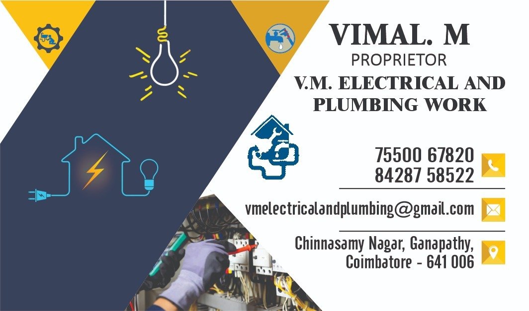 VM Electrical and Plumbing Work is promoted by M.Vimal at Coimbatore. We work hard to provide excellent customer service to all our clients.