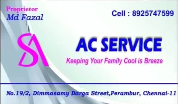 SA AC Service is promoted by Md Fazal at Chennai. We work hard to provide excellent customer service to all our clients.