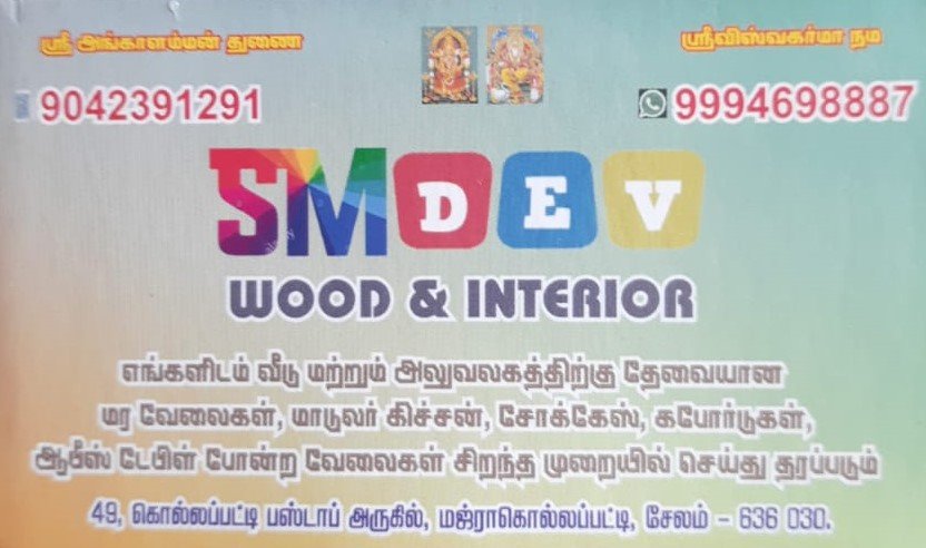 SM Dev Wood & Interior is promoted by E.Suresh at Salem. We work hard to provide excellent customer service to all our clients.