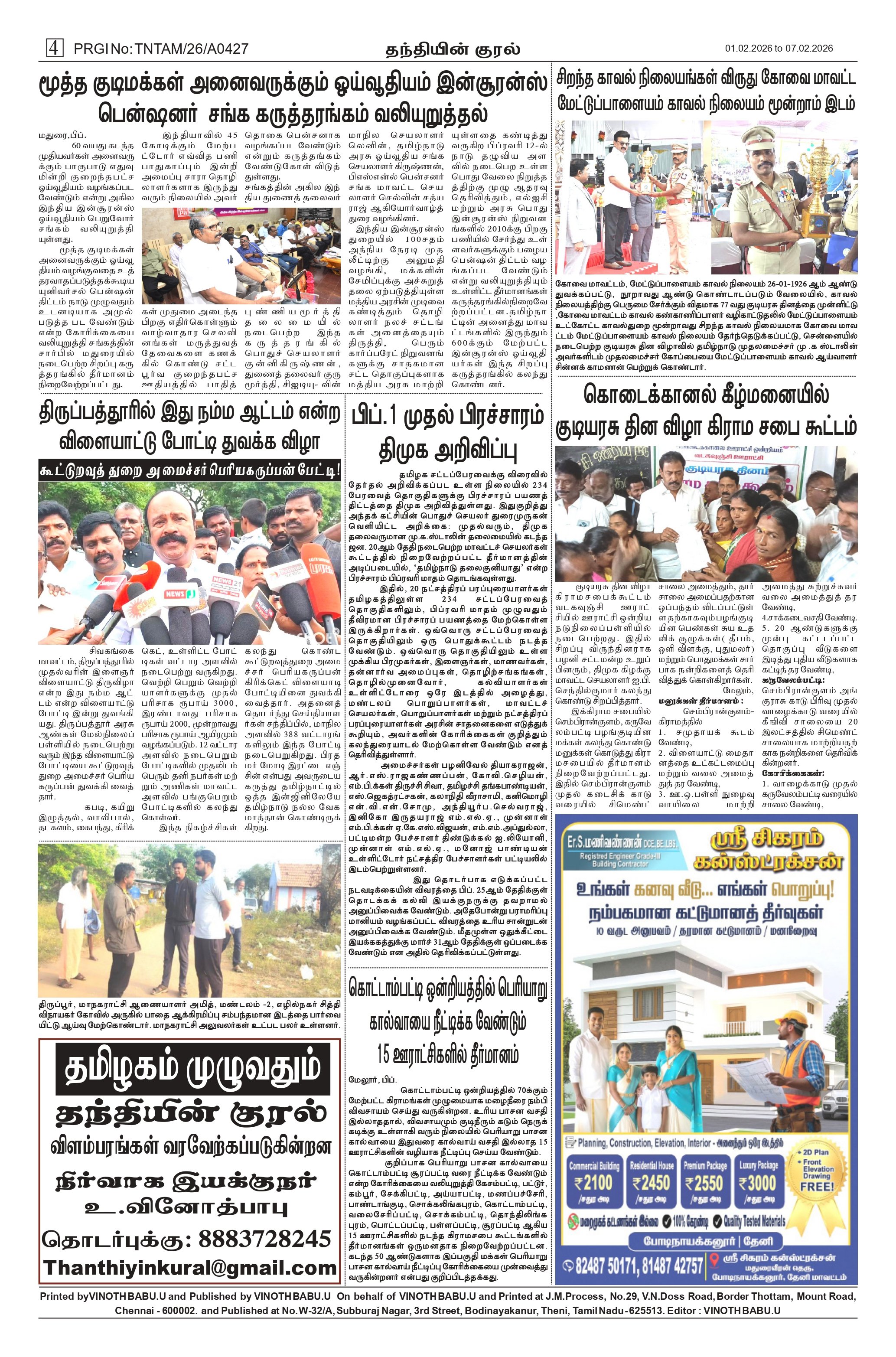Thanthiyin Kural Weekly News Paper is promoted by U.Vinothbabu at Theni. We work hard to provide excellent customer service to all our clients.