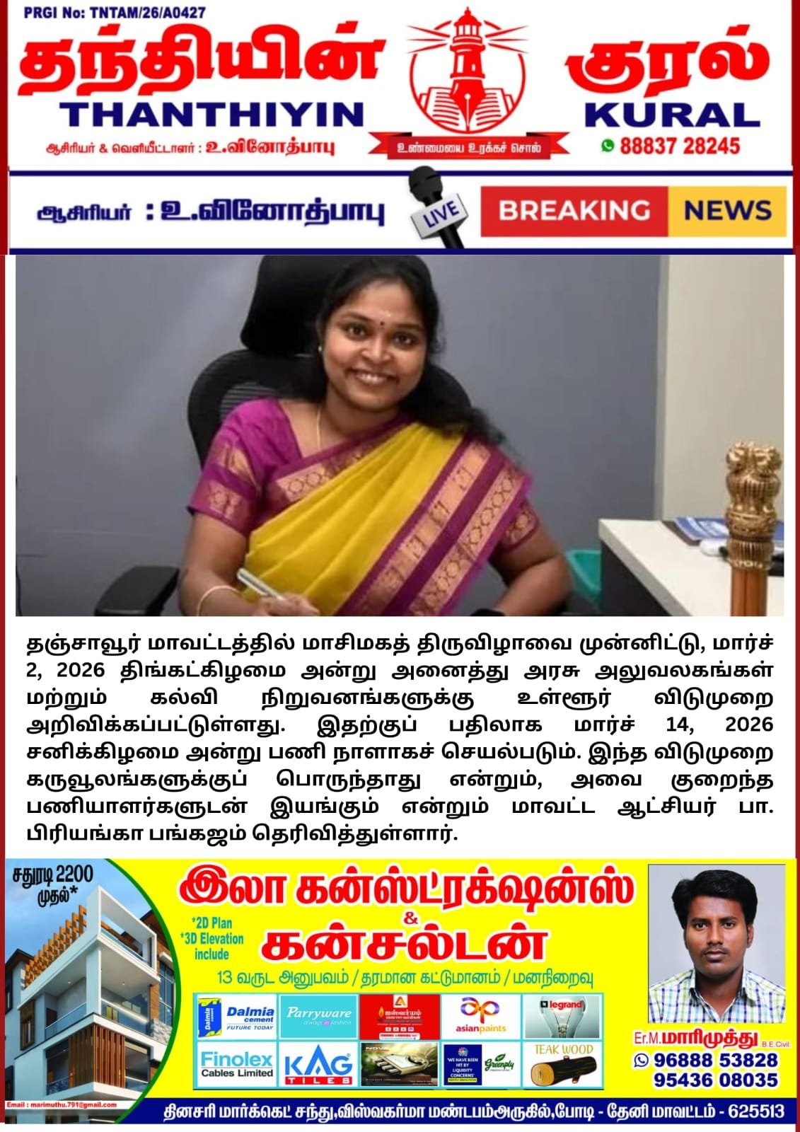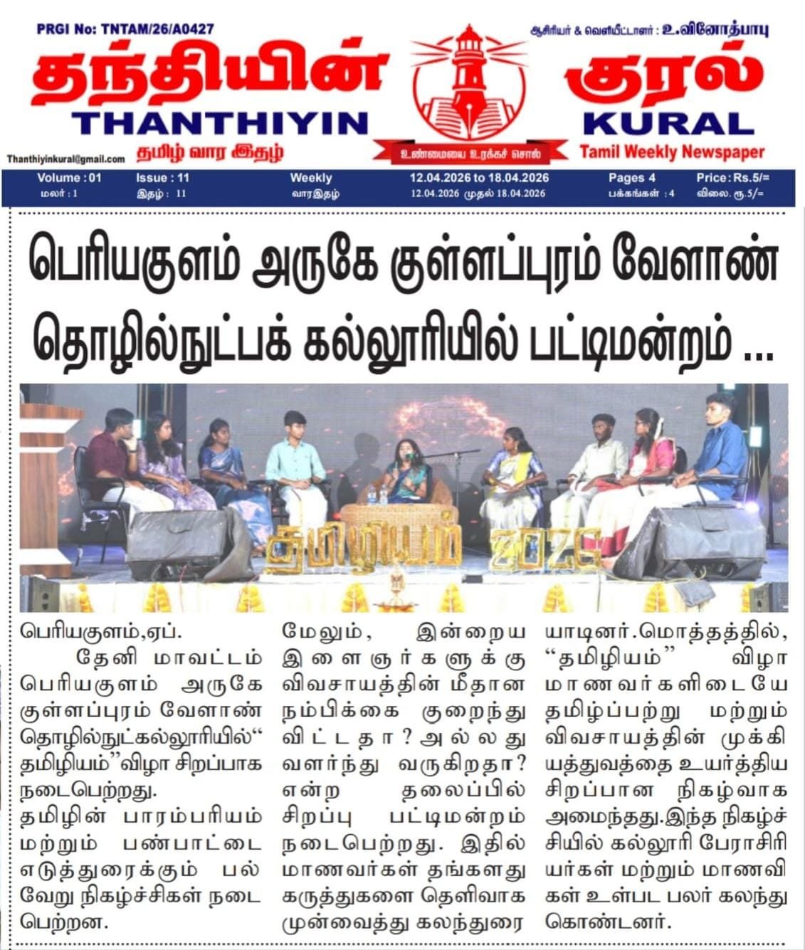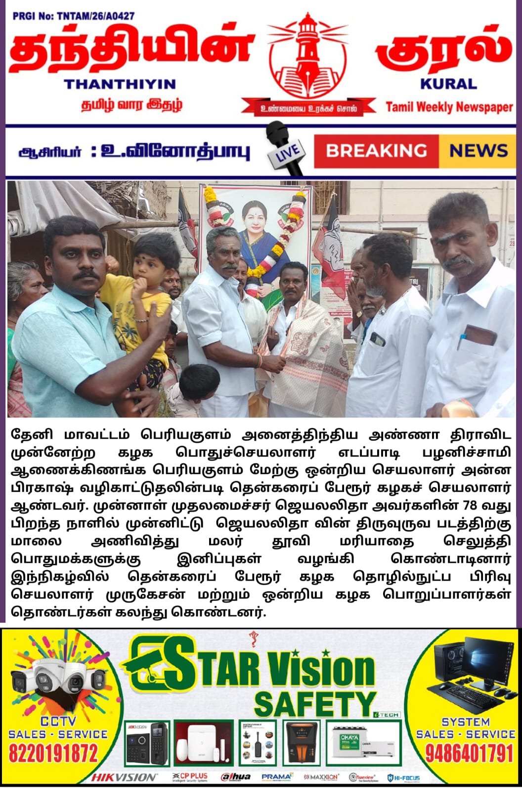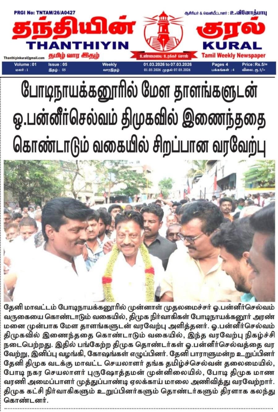 Welcome to Thanthiyin Kural, the trusted Tamil newspaper that has become an integral part of daily life in Theni. With a strong commitment to journalistic excellence, we deliver comprehensive coverage across diverse topics including: