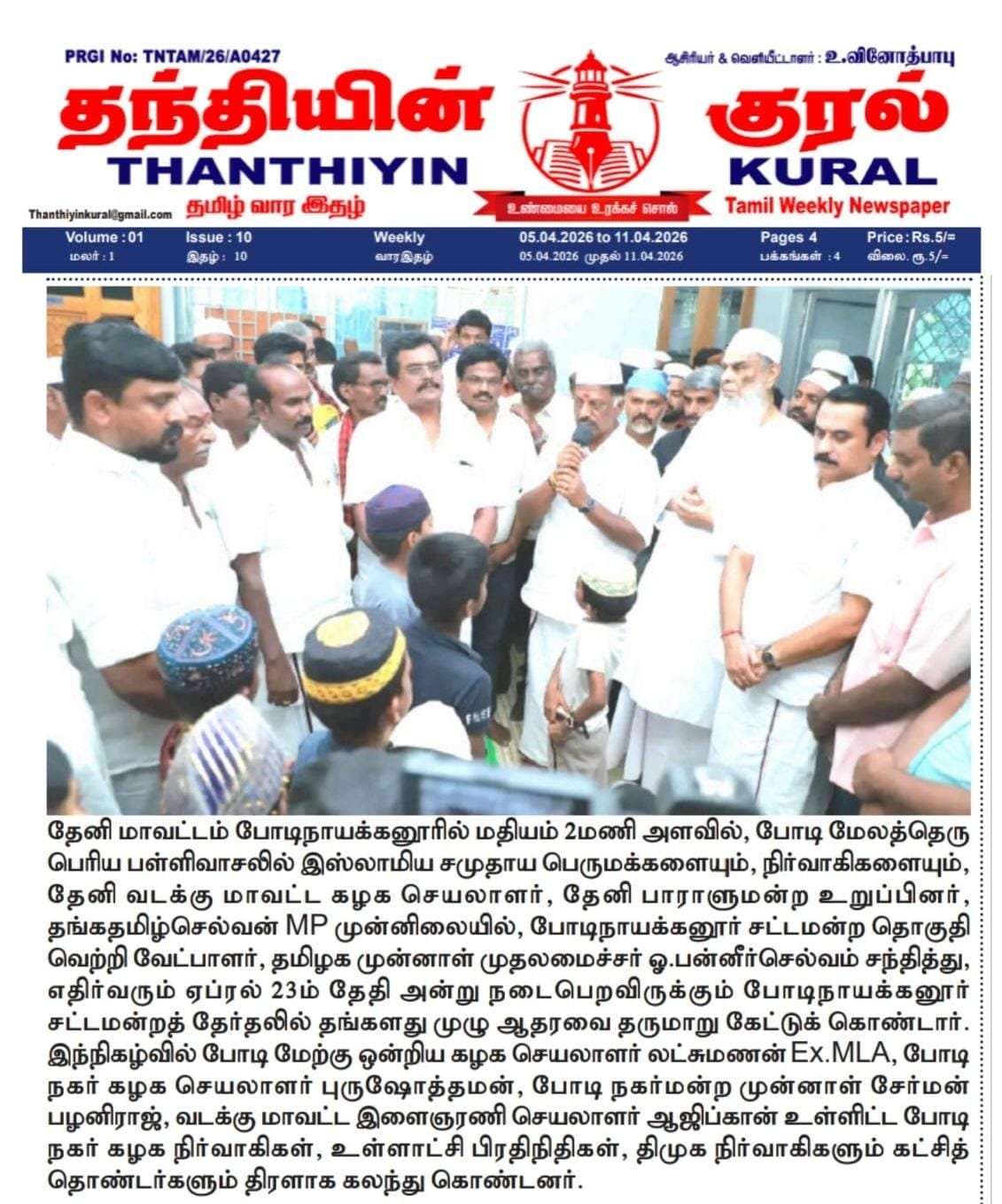 Thanthiyin Kural – Your Premier Source for Tamil News in Theni