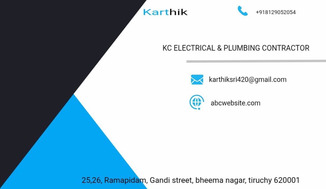 KC Electrical & Plumbing Contractor is promoted by Karthick at Trichy. We work hard to provide excellent customer service to all our clients.