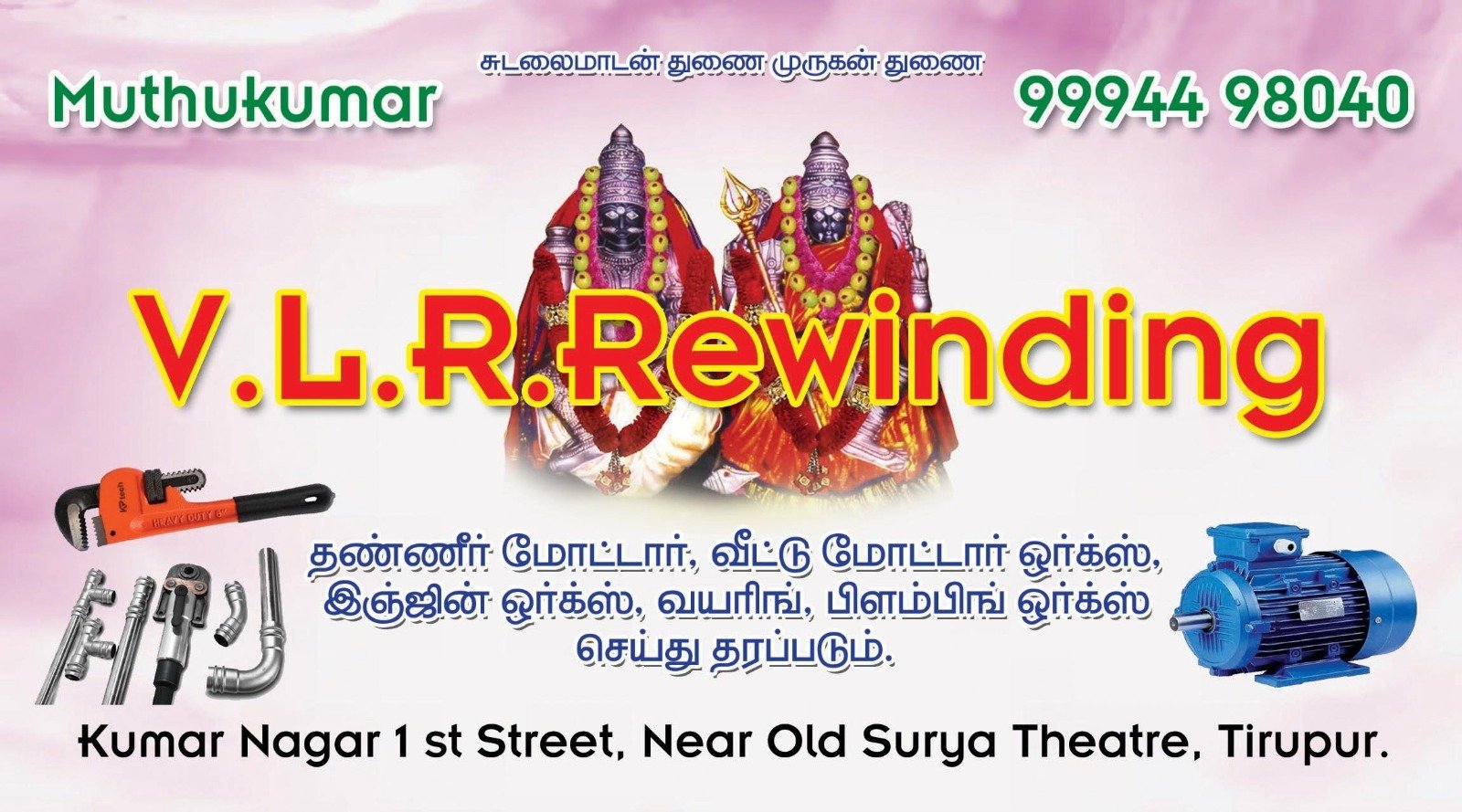 VLR Rewinding is promoted by Muthukumar at Tirupur. We work hard to provide excellent customer service to all our clients.