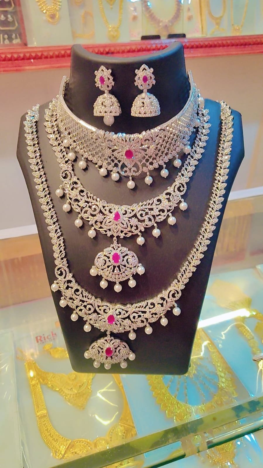 எங்களிடம் மகளிர், கல்லூரி, மற்றும் பள்ளி மாணவியர்கள் அனைவருக்கும் தேவையான அசல் தங்க நகை போல் காட்சியளிக்கும் யாராலும் கண்டுபிடிக்க முடியாத தரம் வாய்ந்த ஆறு மாதம் முதல் ஒரு வருடம் வரை கேரண்டி உள்ள கவரிங் நகைகள், ஒன் கிராம் கோல்டு மற்றும் ஐம்பொன் நகைகள் அனைத்து மாடல்களிலும் மற்றும் லேட்டஸ்ட் டிசைன்களிலும் கிடைக்கும்