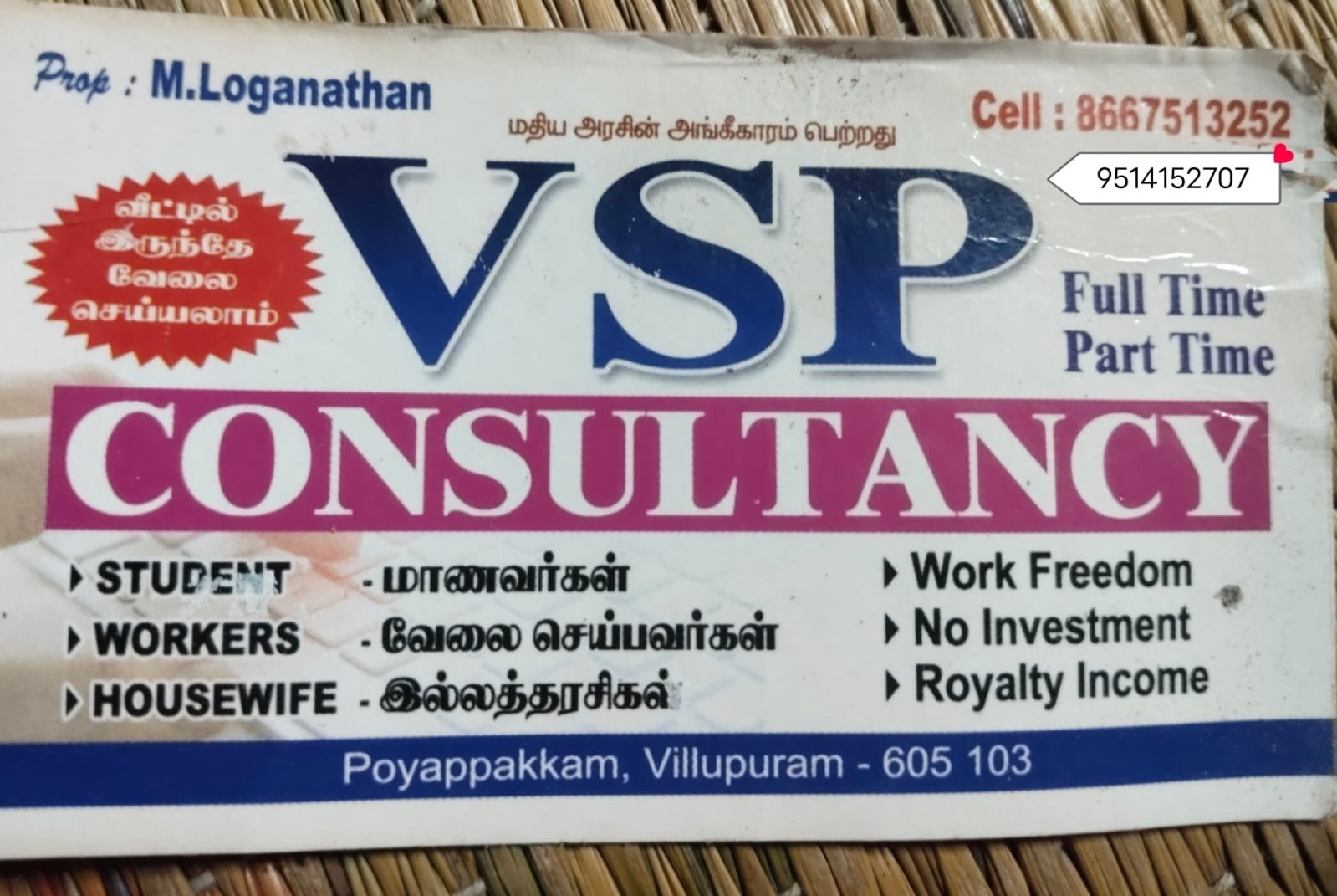 VSP Consultancy is promoted by M.Loganathan at Villupuram. We work hard to provide excellent customer service to all our clients.