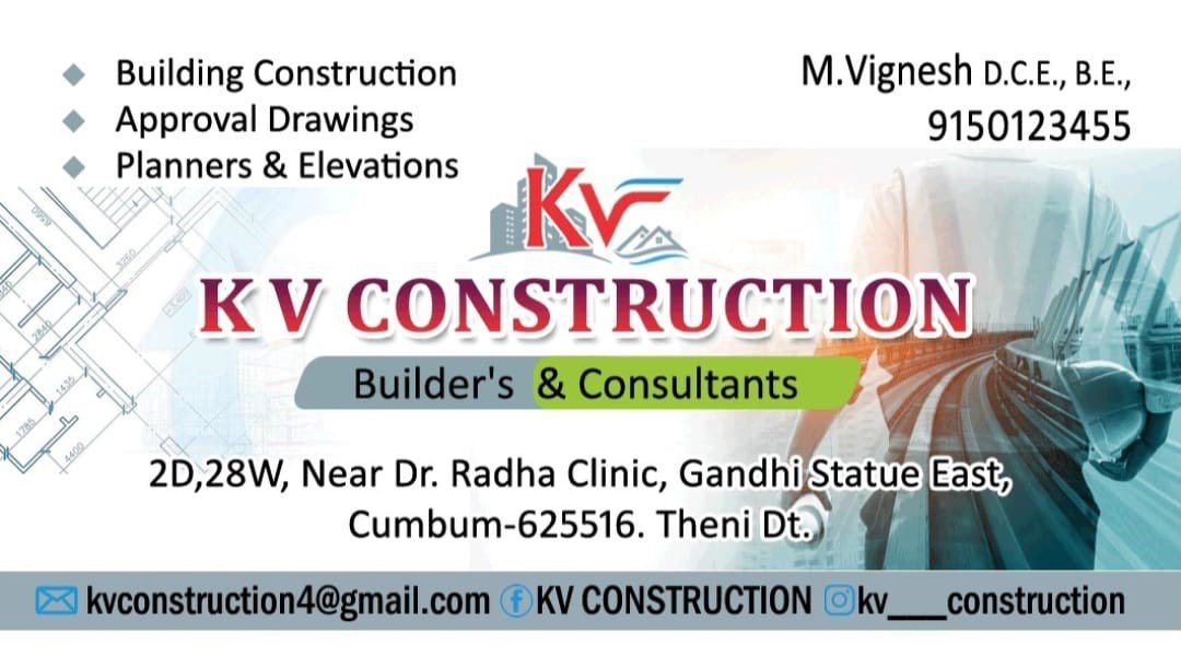 KV Construction is promoted by M.Vignesh at Theni. We work hard to provide excellent customer service to all our clients.