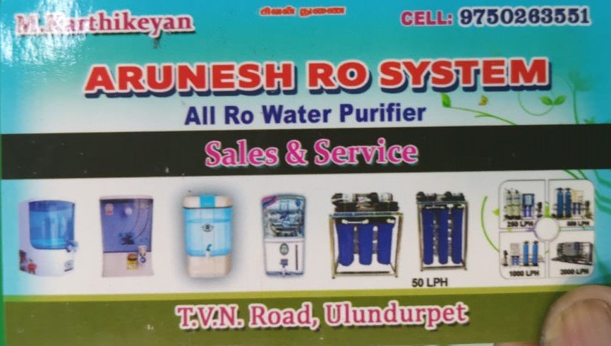 Arunesh RO System is promoted by M.Karthikeyan at Ulundurpet. We work hard to provide excellent customer service to all our clients.