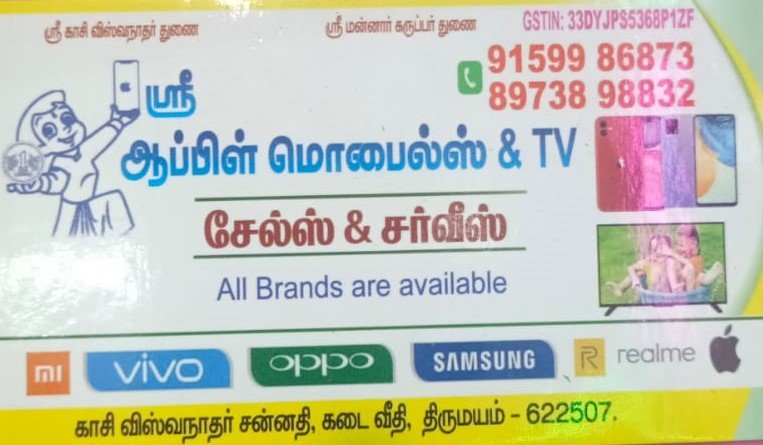 Sri Apple Mobiles & TV Sales & Service is promoted by Sri at Thirumayam. We work hard to provide excellent customer service to all our clients.