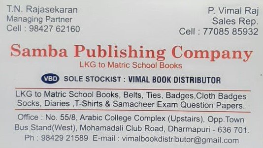 Vimal Book Distributor is promoted by P.Vimal Raj at Dharmapuri. We work hard to provide excellent customer service to all our clients.