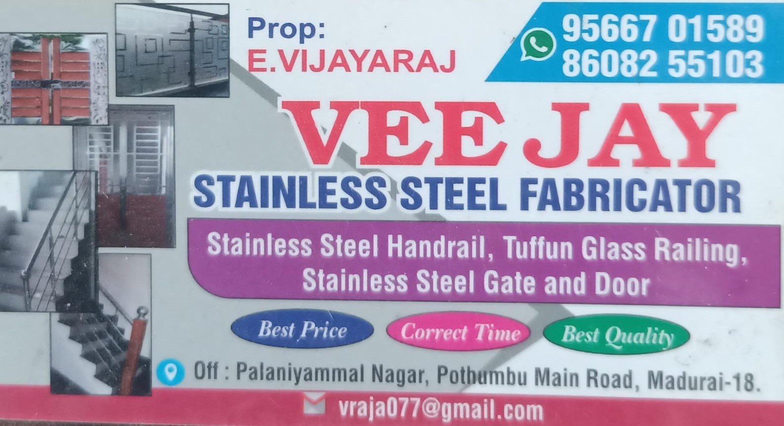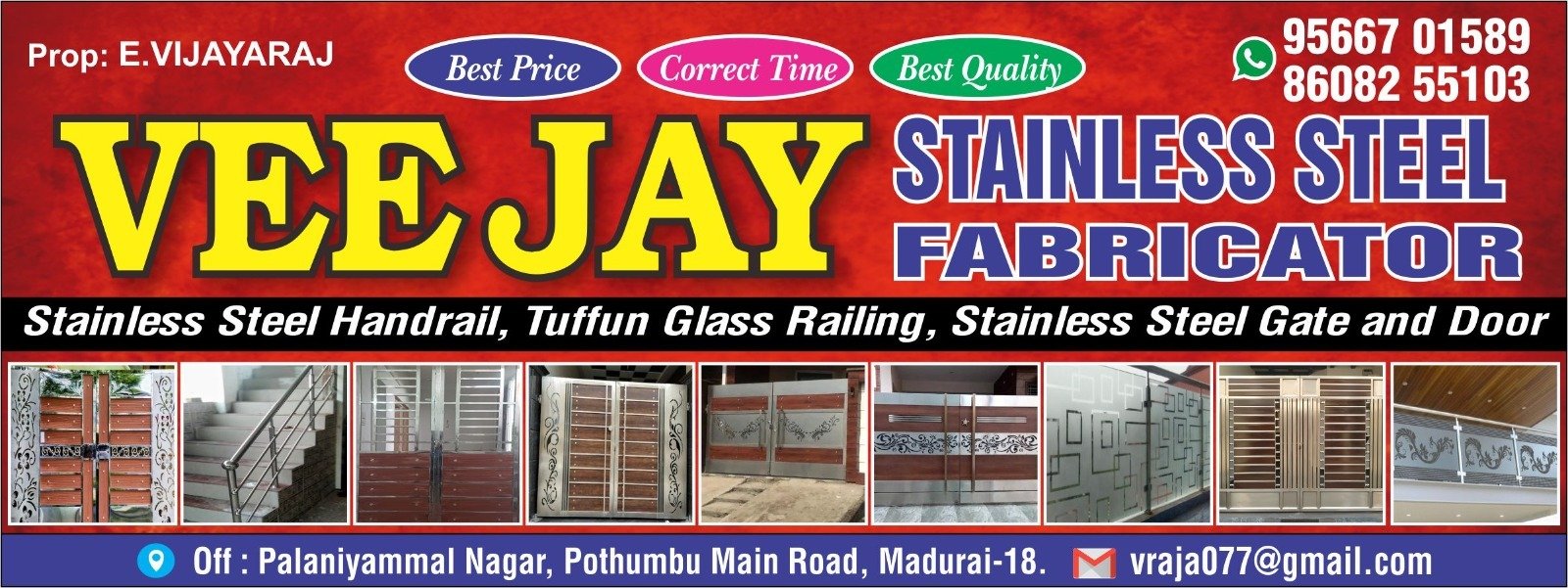 Vee Jay Stainless Steel Fabricator is promoted by E.Vijayaraj at Madurai. We work hard to provide excellent customer service to all our clients.