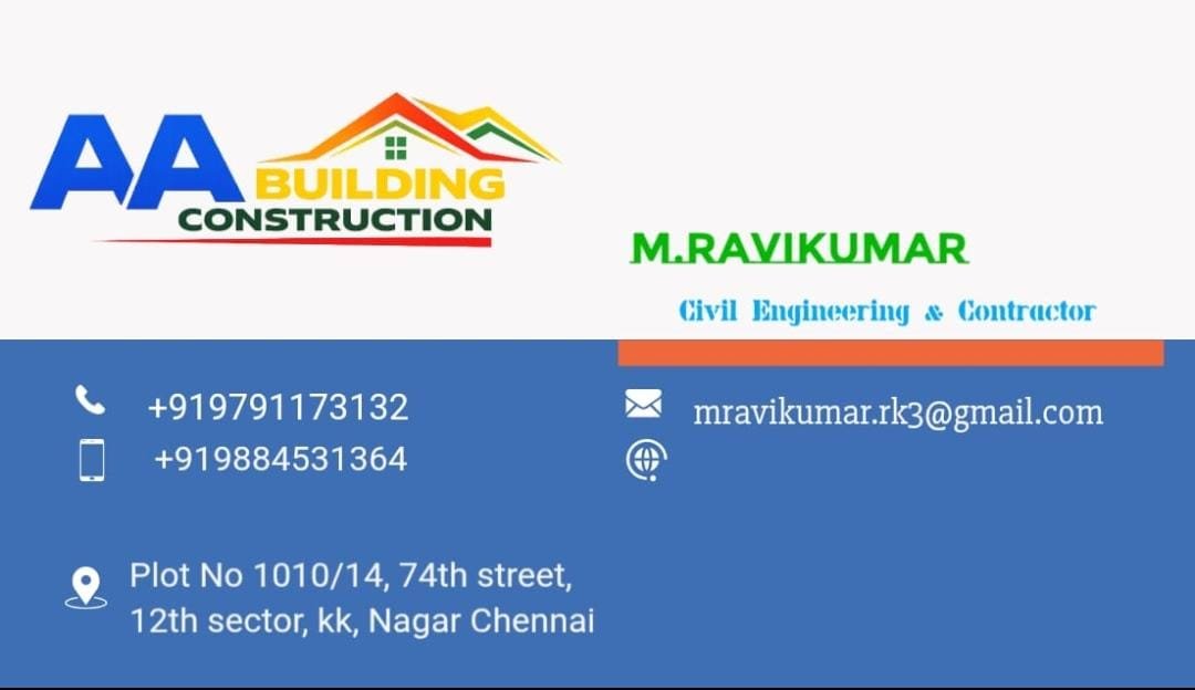 AA Building Construction is promoted by M.Ravikumar at Chennai. We work hard to provide excellent customer service to all our clients.