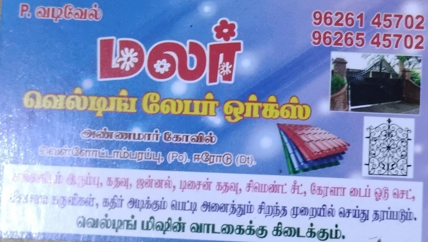 Malar Welding Labour Works is promoted by P.Vadivel at Erode. We work hard to provide excellent customer service to all our clients.