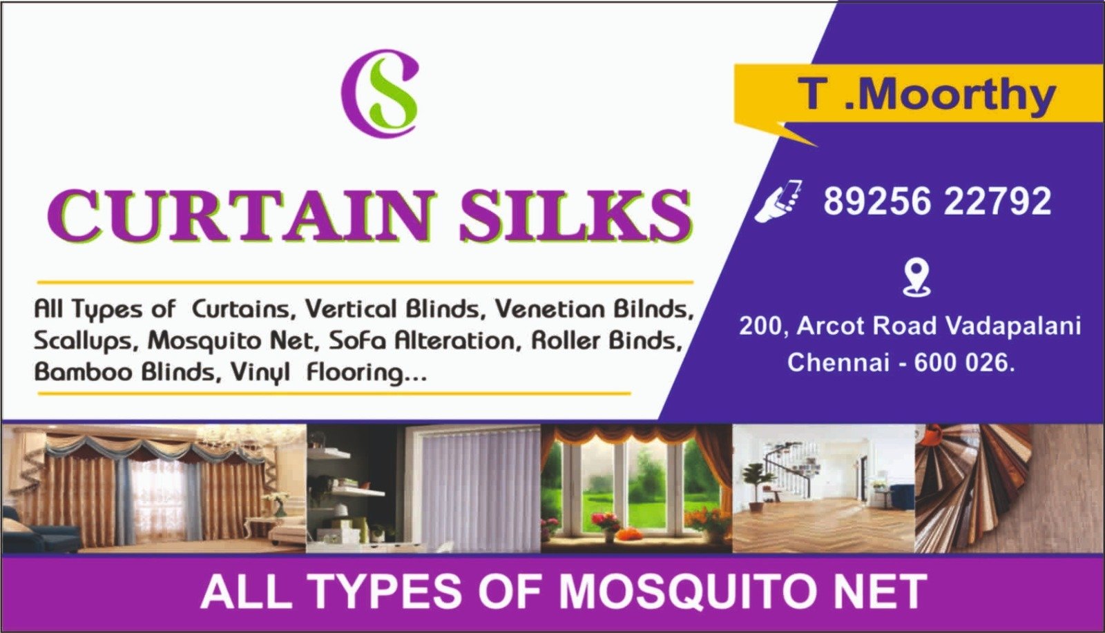 CS Curtain Silks is promoted by T.Mooorthy at Chennai. We work hard to provide excellent customer service to all our clients.
