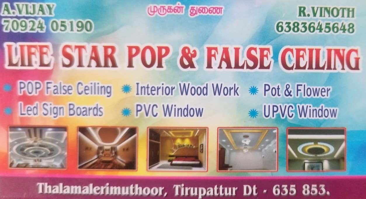 Life Star Pop & False Ceiling is promoted by A.Vijay at Tirupathur. We work hard to provide excellent customer service to all our clients.
