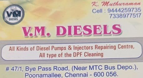 VM Diesels is promoted by K.Muthuraman at Chennai. We work hard to provide excellent customer service to all our clients.