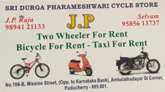 JP Two Wheeler for Rent is promoted by J.P.Raja at Puducherry. We work hard to provide excellent customer service to all our clients.
