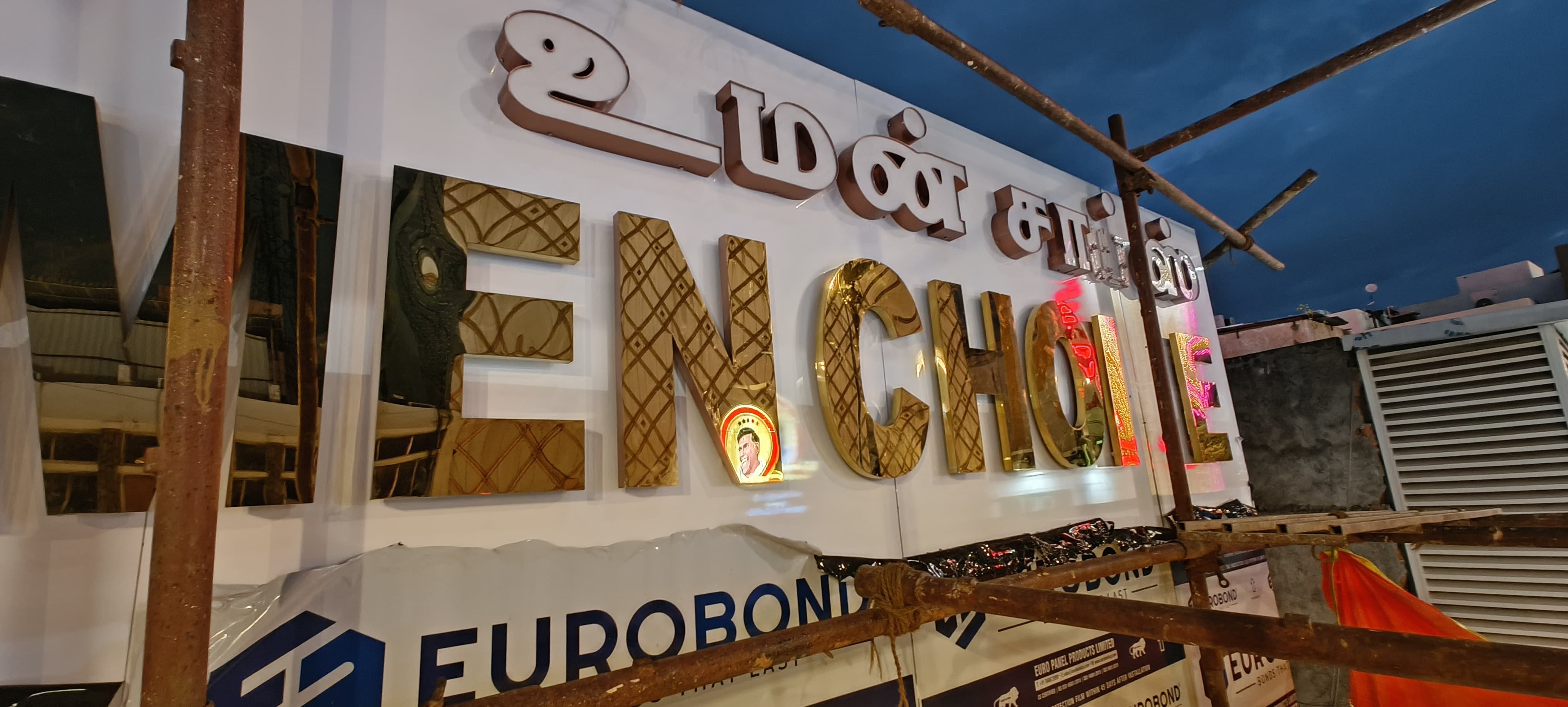 நாங்கள் சிறந்த முறையில் அனைத்து விதமான சைன் போர்டுஸ் அனைத்தும் செய்து தருகிறோம். LED சைன் போர்டு, நியான் சைன், மெட்டல் லெட்டர்ஸ், வால் பிராண்டிங், கிப்ட்ஸ், வீடியோ வால், அக்ரிலிக் பாக்ஸ்கள், பெயர் பேட்ஜ், கீசெயின், லேசர் கட்டிங் போன்ற அனைத்தும் சிறந்த முறையில் செய்து தருகிறோம்.