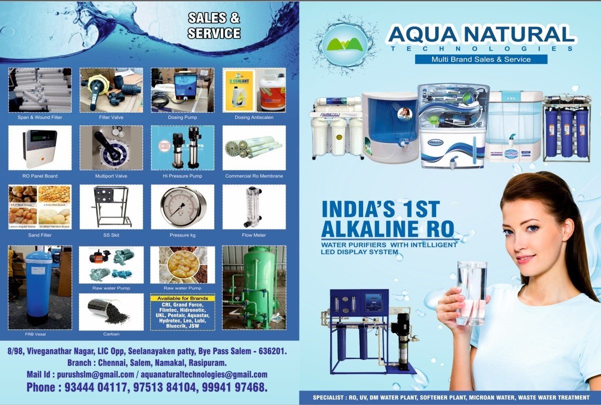 நாங்கள் அனைத்து பிராண்ட் Aqua Natual வாட்டர் ப்யூரிஃபைர்களையும் சிறந்த முறையில் சேல்ஸ் & சர்வீஸ் செய்து தருகிறோம்.
