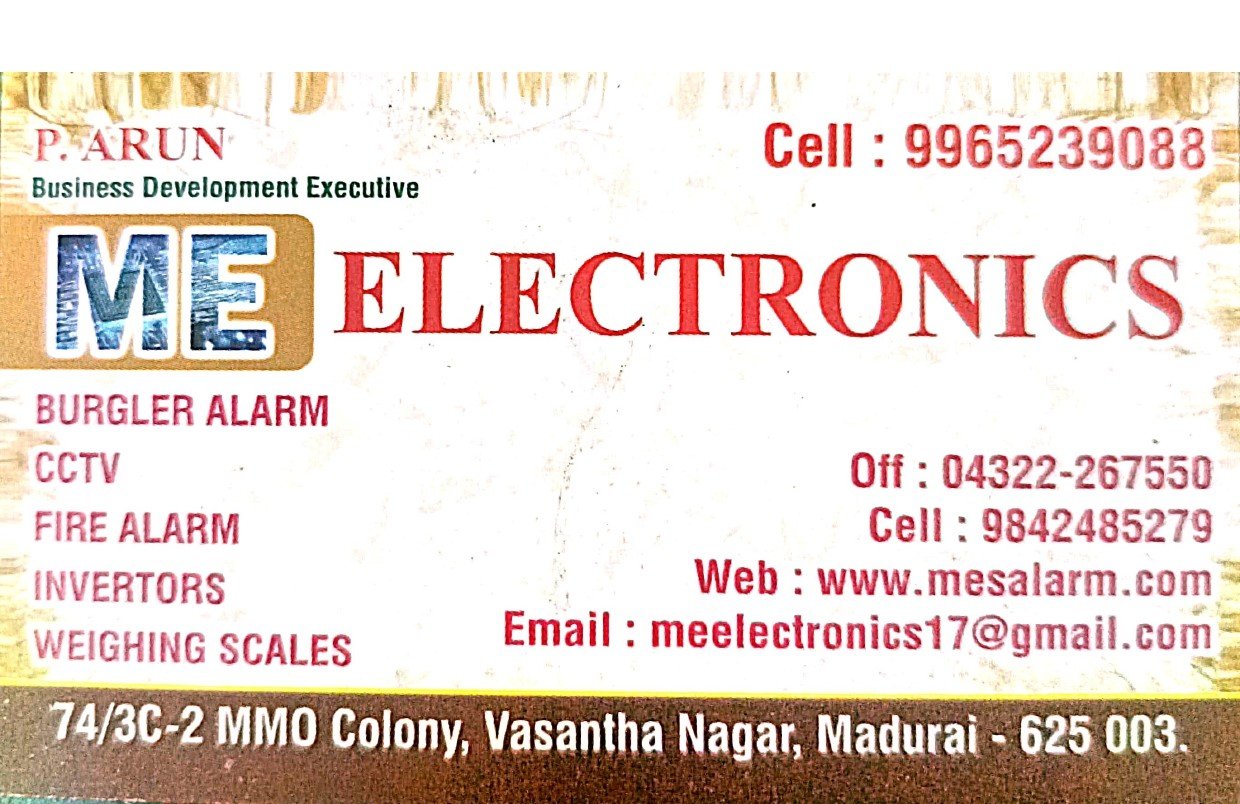 ME Electronics is promoted by P.Arun at Madurai. We work hard to provide excellent customer service to all our clients.