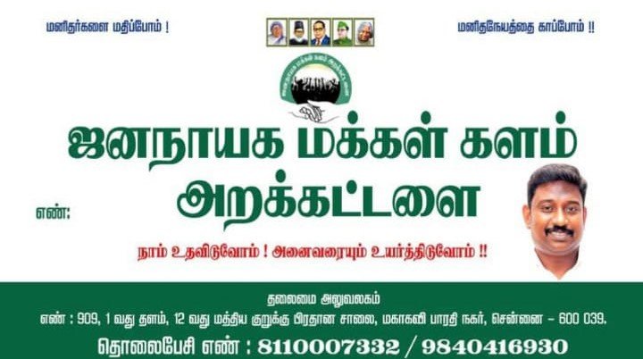 Welcome to Jananayaka Makkal Kalam Arakattalai, a registered voluntary organization (Reg. No.: 185/2022) dedicated to uplifting communities and improving lives.