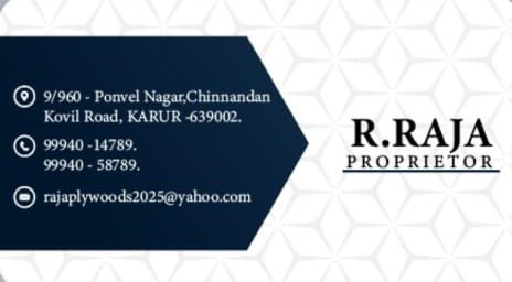 Raja Raman Plywoods is promoted by R.Raja at Karur. We work hard to provide excellent customer service to all our clients.