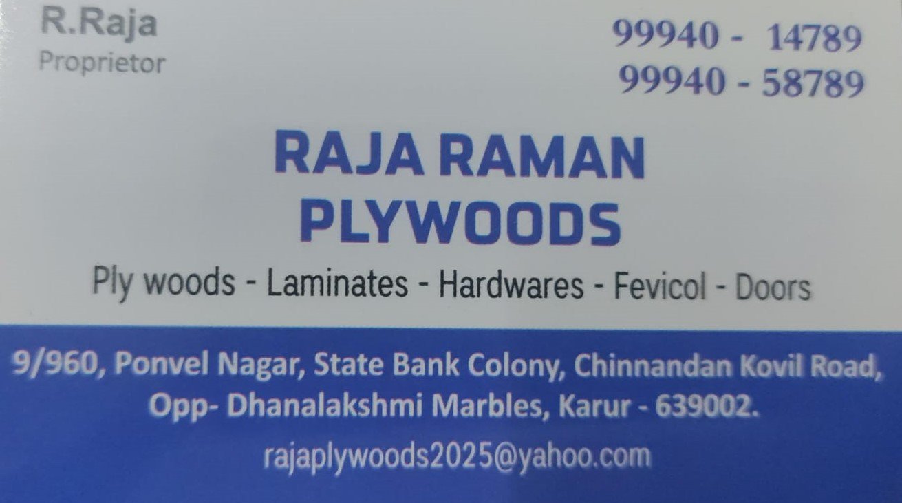 Raja Raman Plywoods-க்கு உங்களை வரவேற்கிறோம்!