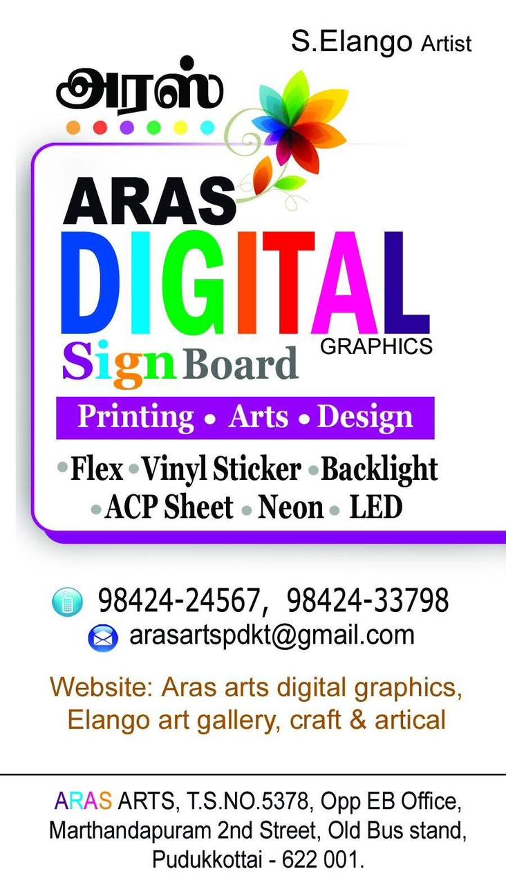 Aras Digital Graphics is promoted by S.Elango at Pudukkottai. We work hard to provide excellent customer service to all our clients.
