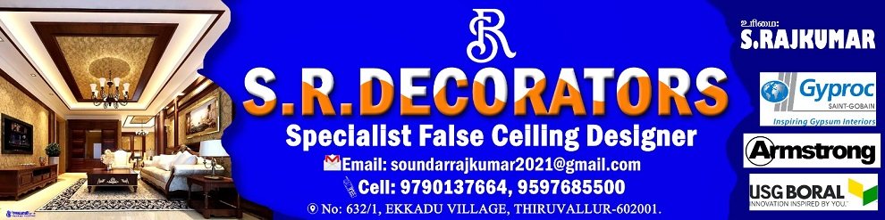 SR Decorators is promoted by S.Rajkumar at Thiruvallur. We work hard to provide excellent customer service to all our clients.