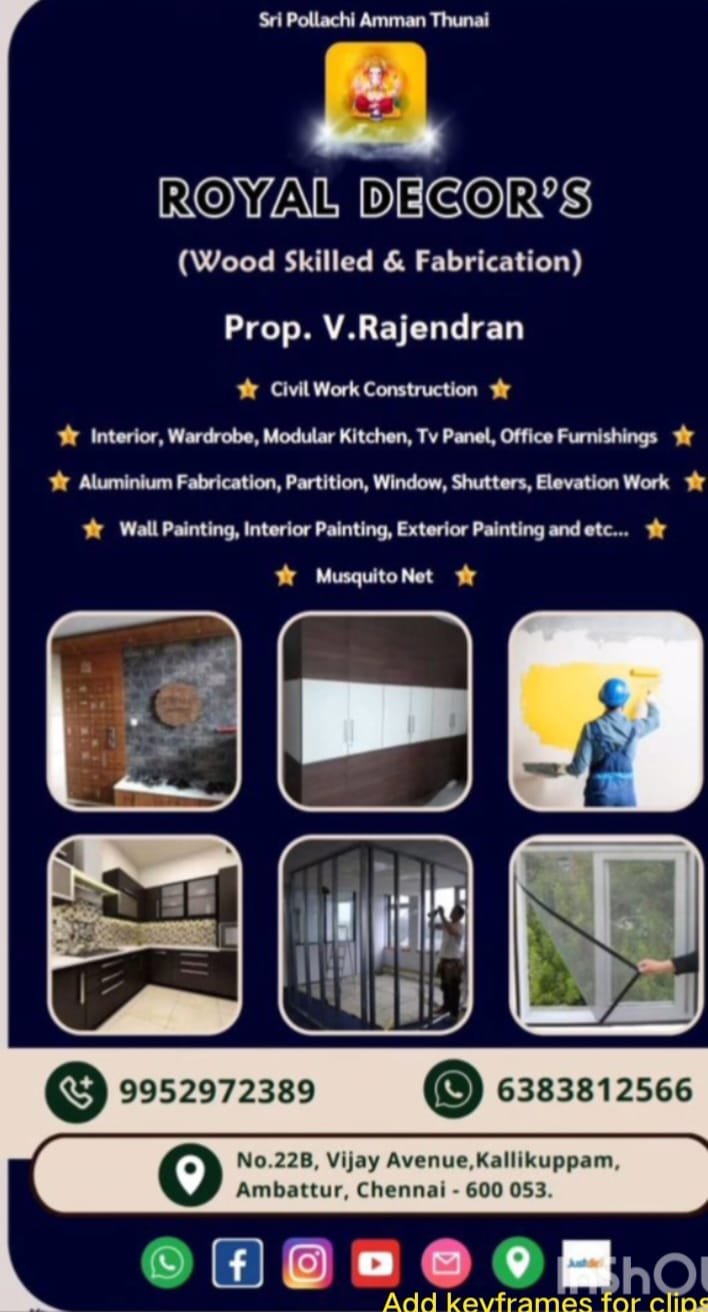 Royal Decor's is promoted by V.Rajendran at Chennai. We work hard to provide excellent customer service to all our clients.
