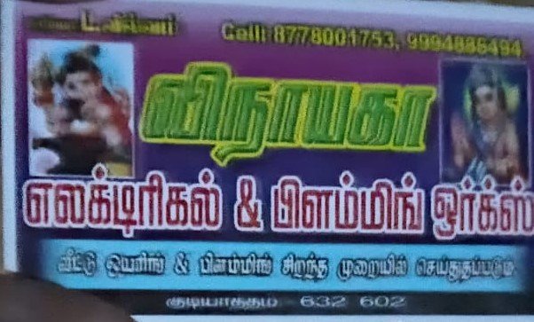 Vinayaga Electrical & Plumbing Works is promoted by L.Vilvam lel at Gudiyatham. We work hard to provide excellent customer service to all our clients.
