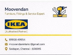 Moovendan Interior is promoted by Moovendan at Chennai. We work hard to provide excellent customer service to all our clients.