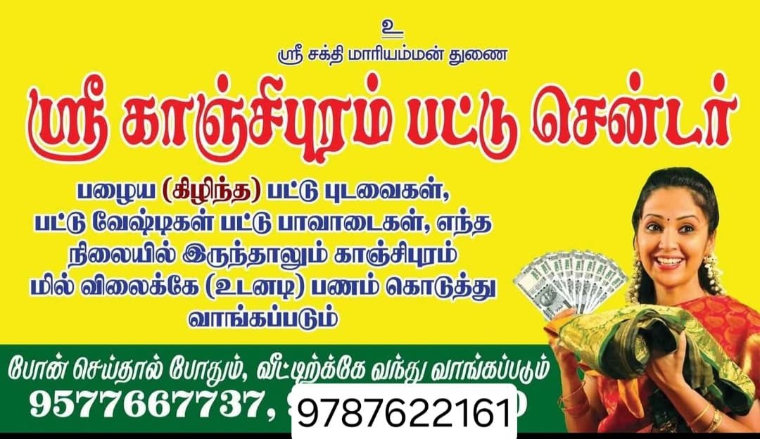 தி நகர்,சென்னையில் அமைந்துள்ள ஸ்ரீ காஞ்சிபுரம் சில்க் சென்டர், உங்கள் பழைய பட்டுத் துணிகளுக்குச் சரியான மதிப்பினை வழங்கும் நம்பிக்கைக்குரிய நிறுவனம். பட்டுப் புடவைகள் முதல் வேட்டிகள் வரை, அவை எந்த நிலையில் இருந்தாலும் உங்கள் பட்டின் தரத்திற்கேற்ப உடனடிப் பணமாக நாங்கள் வழங்குகிறோம்.