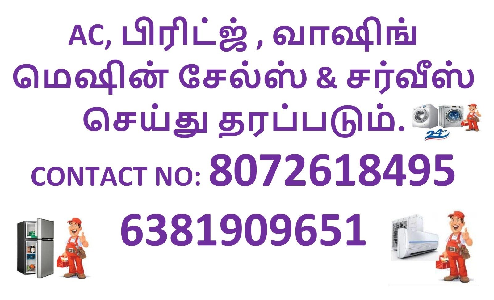 நாங்கள் அனைத்து பிராண்டு AC, பிரிட்ஜ், வாஷிங் மெஷின் மற்றும்பல உள்ளிட்ட அனைத்தும் வகையான வீட்டு உபோயக பொருட்களும் சிறந்த முறையில் சேல்ஸ் மற்றும் சர்வீஸ் செய்து தருகிறோம்.