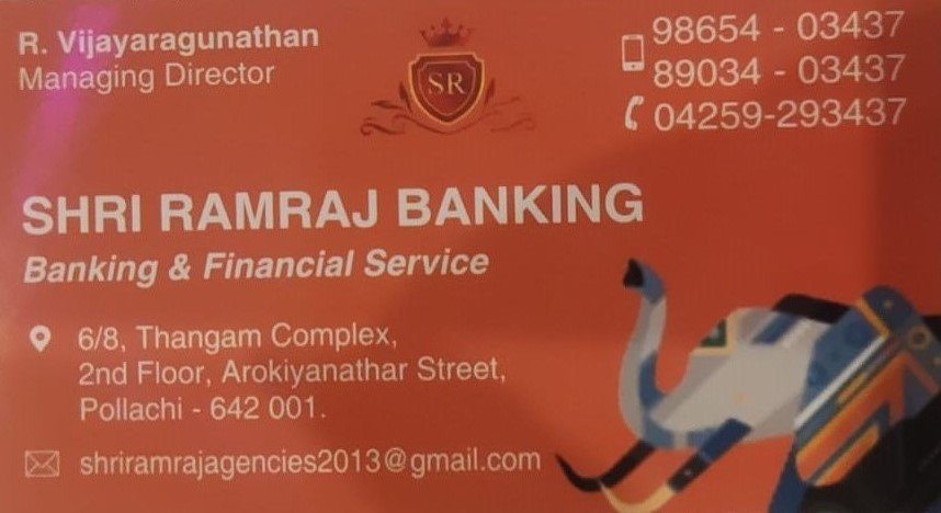 Shri Ramraj Banking is promoted by R.Vijayaragunathan at Pollachi. We work hard to provide excellent customer service to all our clients.