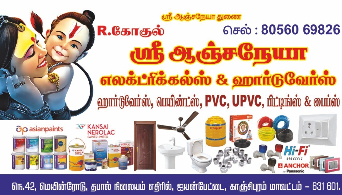ஸ்ரீ அஞ்சயனா எலக்ட்ரிக்கல்ஸ் & ஹார்டுவேர்ஸுக்கு உங்களை வரவேற்கிறோம்!
