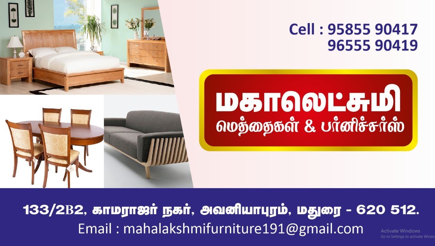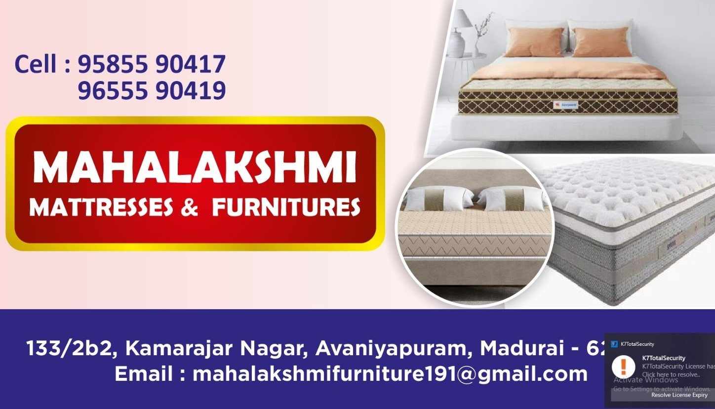 Mahalakshmi Mattresses & Furnitures is promoted by Karthik at Madurai. We work hard to provide excellent customer service to all our clients.