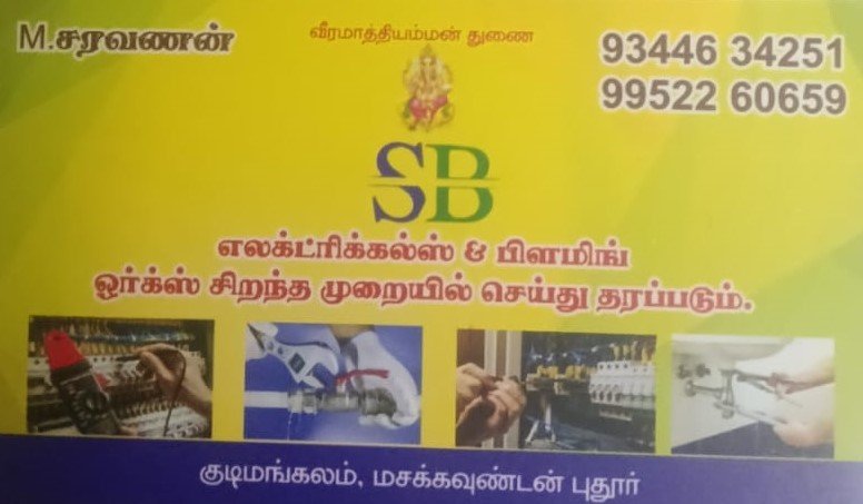 SB Electrical & Plumbing is promoted by M.Saravanan at Masa Goundan Pudur. We work hard to provide excellent customer service to all our clients.