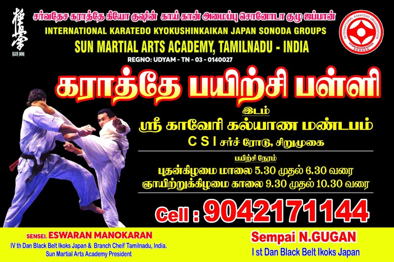 Welcome to Sun Martial Arts Academy – International Kyokushin Karate Training in Coimbatore!