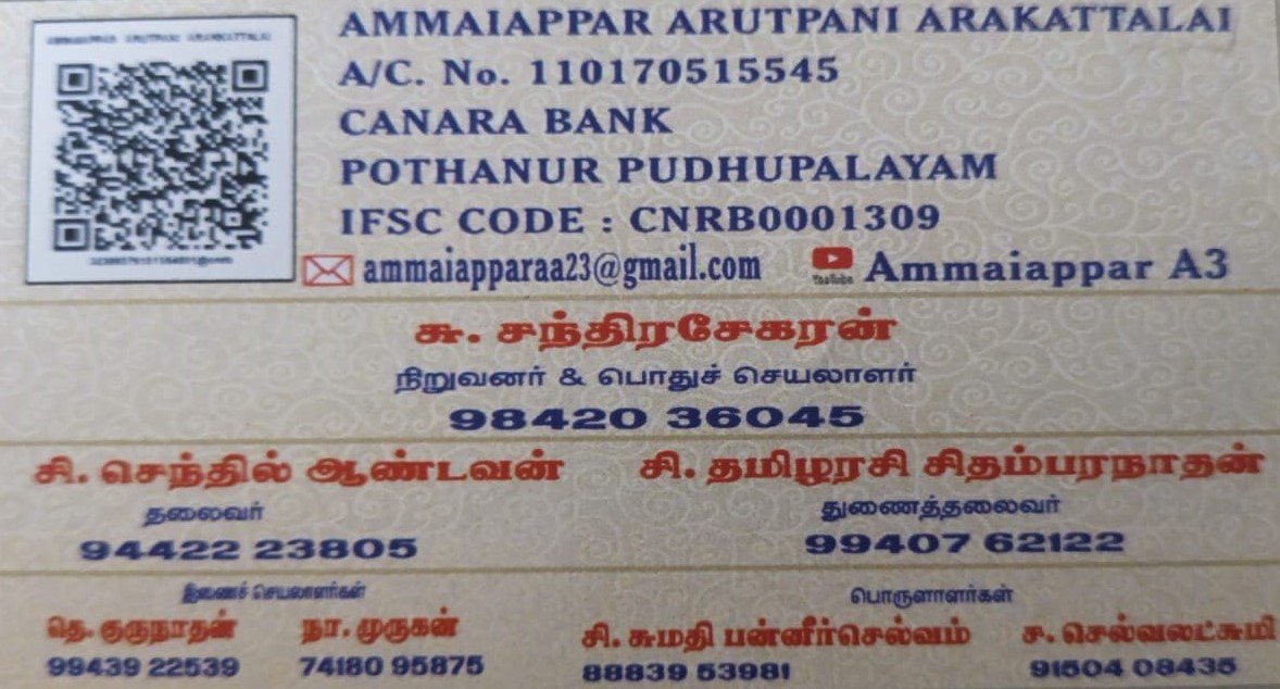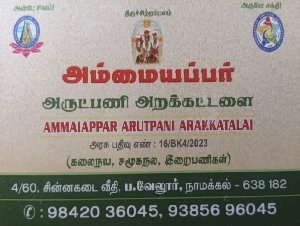 Ammaiappar Arutpani Arakkatalai is promoted by Chandrasekar at Namakkal. We work hard to provide excellent customer service to all our clients.