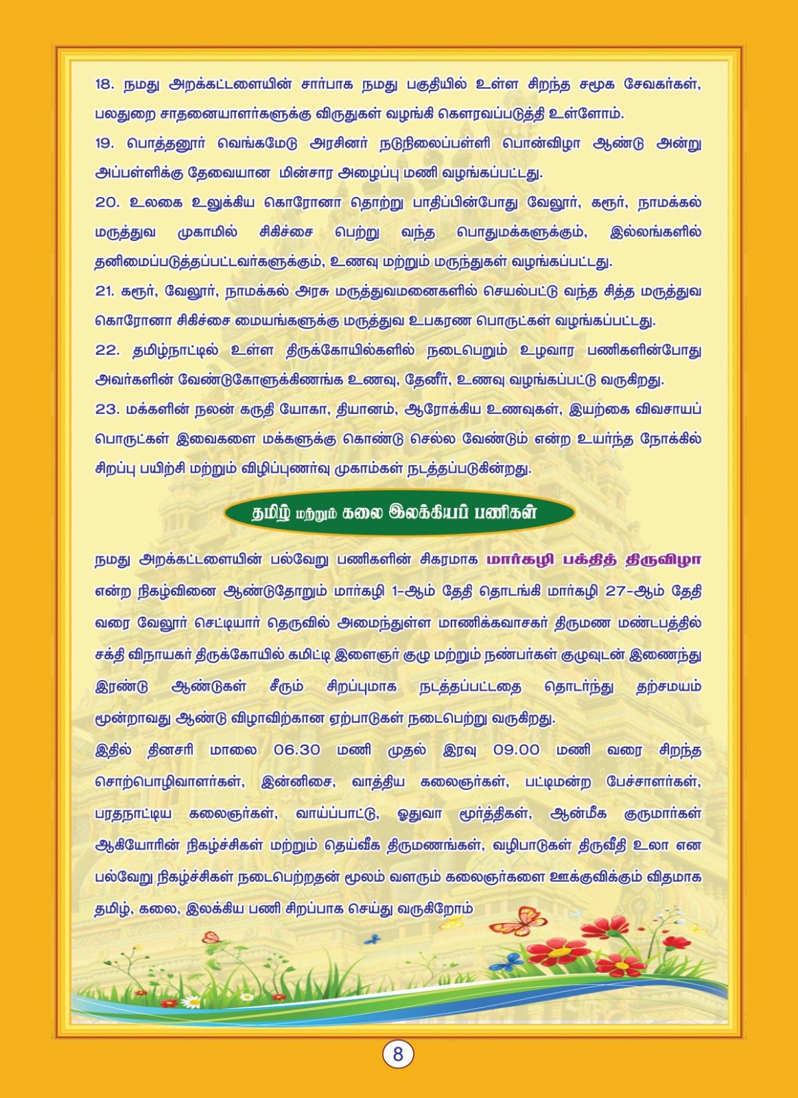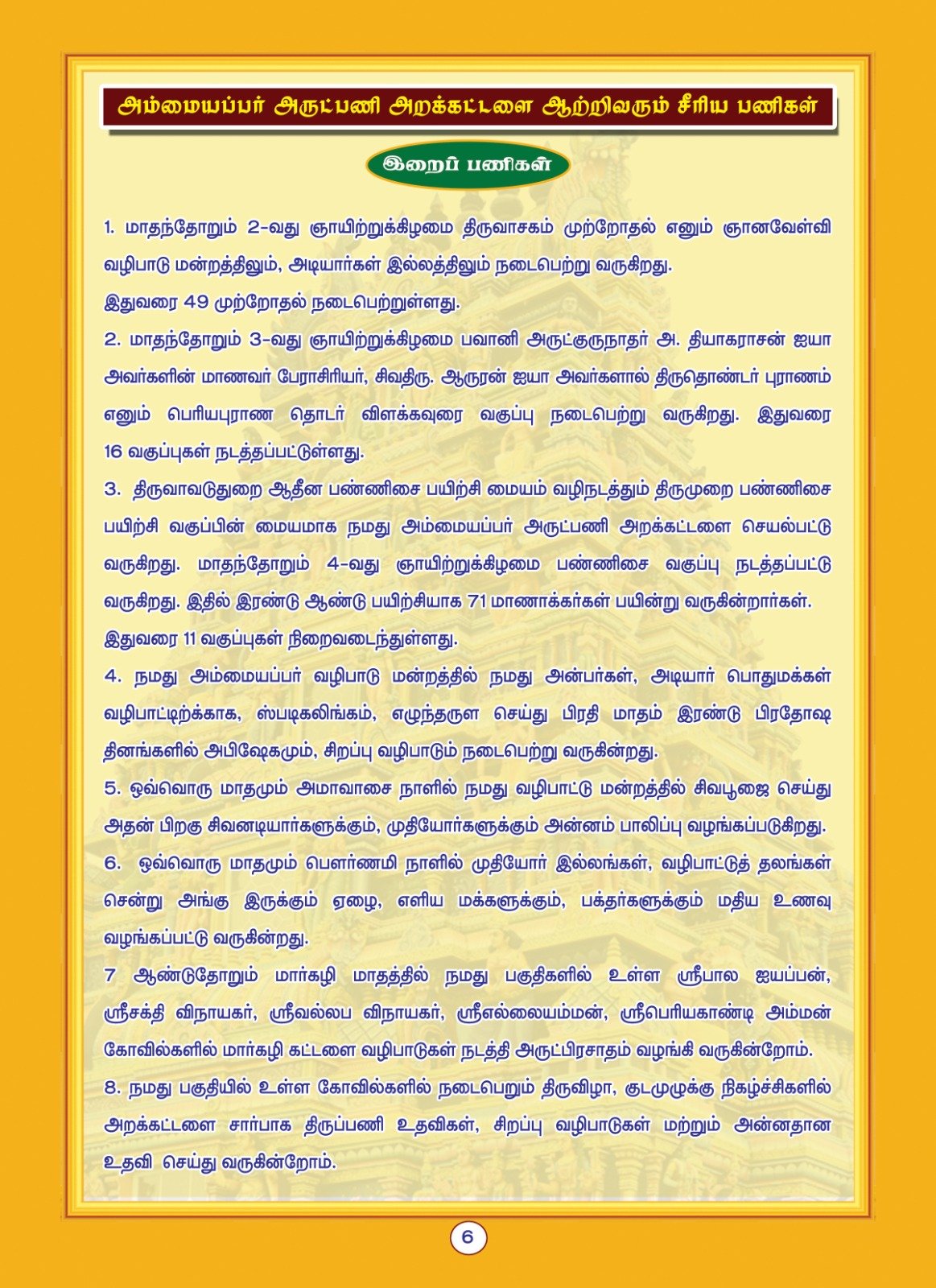 - Iraipani – Promoting spiritual growth and service.