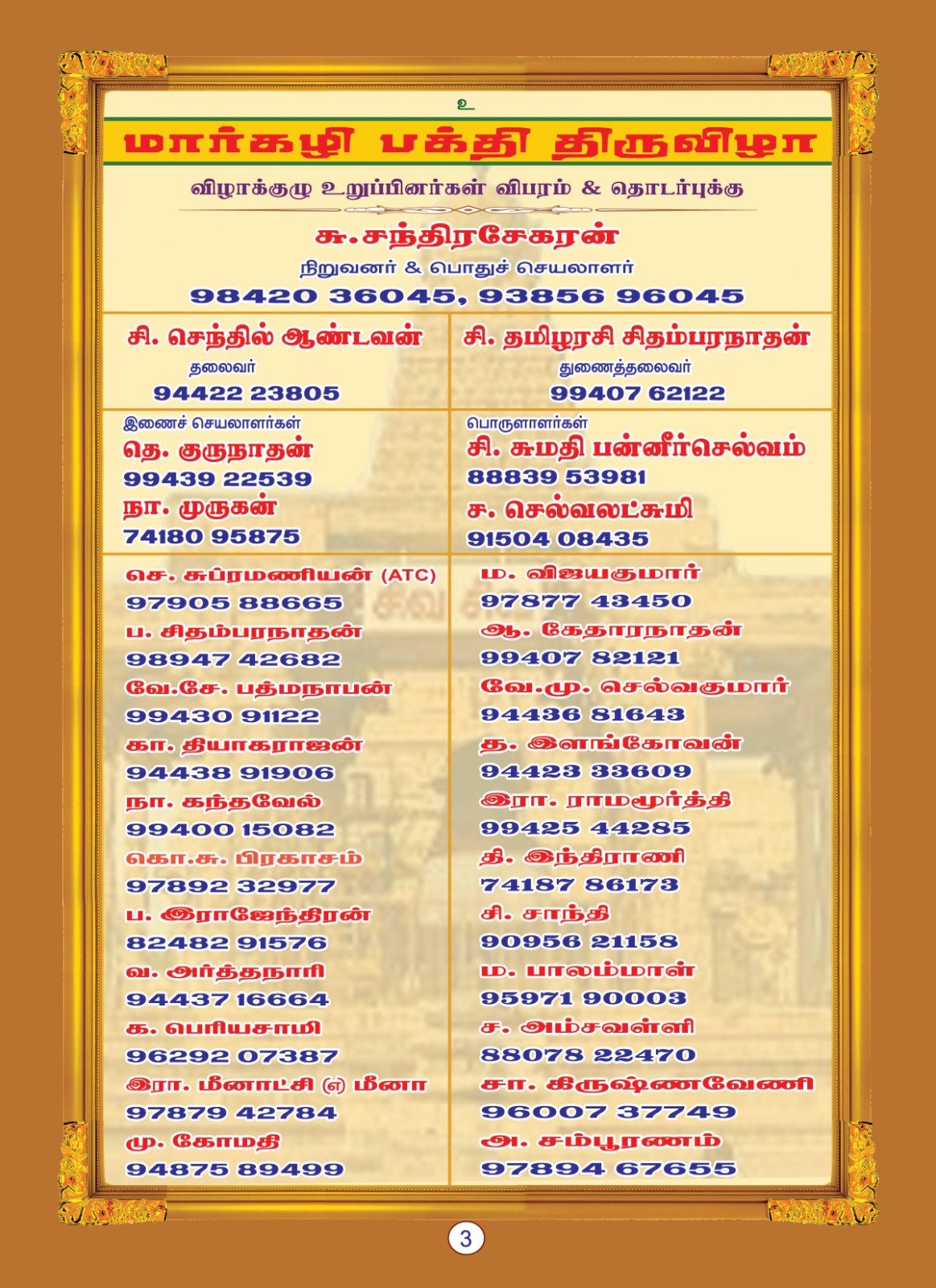 | Phone | 9842036045, 9385696045, 9442223805, 9940762122, 9843922539, 7418095875, 8883953981, 9150408436 |