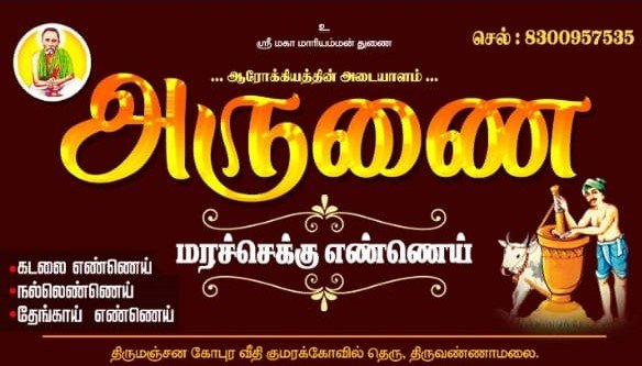 Arunai Marachekku Oil is promoted by Arunai Marachekku Oil at Tiruvanamalai. We work hard to provide excellent customer service to all our clients.