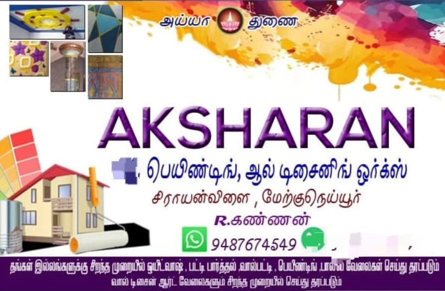 Aksharan Painting All Designing Works is promoted by R.Kannan at Kanniyakumari. We work hard to provide excellent customer service to all our clients.