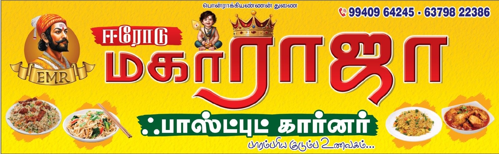 We specialize in both dine-in and catering, ensuring that every meal is a feast worth remembering. Contact us today to book your order and experience the taste of Erode Maharaja Fast Food Corner – because great food makes every occasion special!