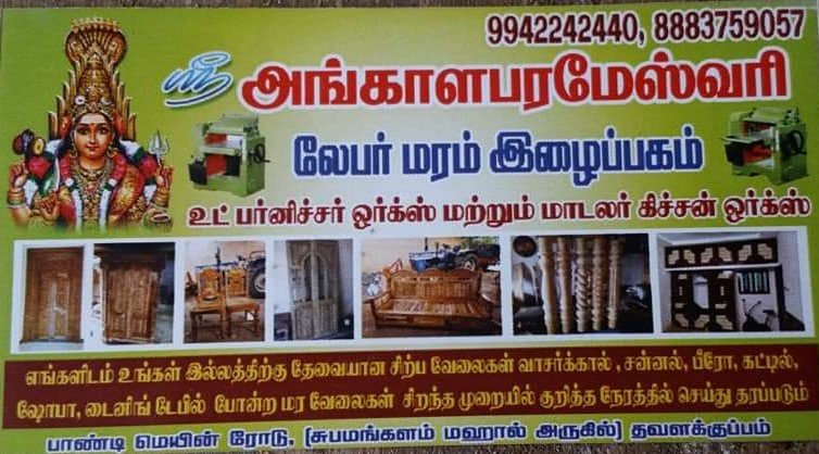 Sri Angalaparameshwari Wood Furniture Works is promoted by S.Ravichandran at Thavalakuppam. We work hard to provide excellent customer service to all our clients.