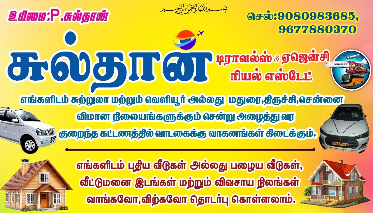 We also specialize in Real Estate Services at the best price. Whether you are looking to buy or sell old houses, new houses, plots, Agricultural land, or other properties, Sulthan Taxi ensures a smooth, transparent, and trustworthy experience.