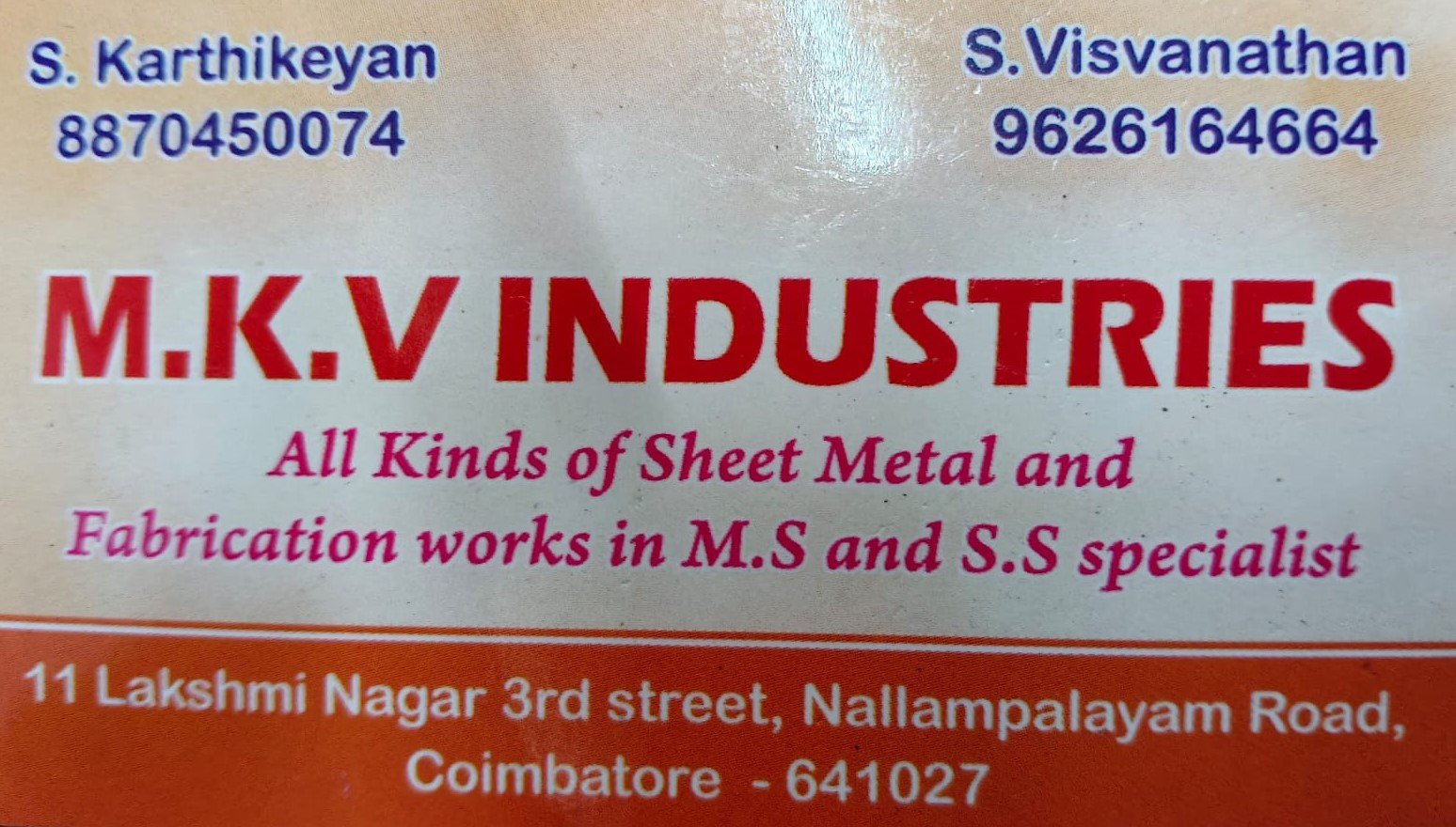 MKV Industries is promoted by S.Karthikeyan at Coimbatore. We work hard to provide excellent customer service to all our clients.