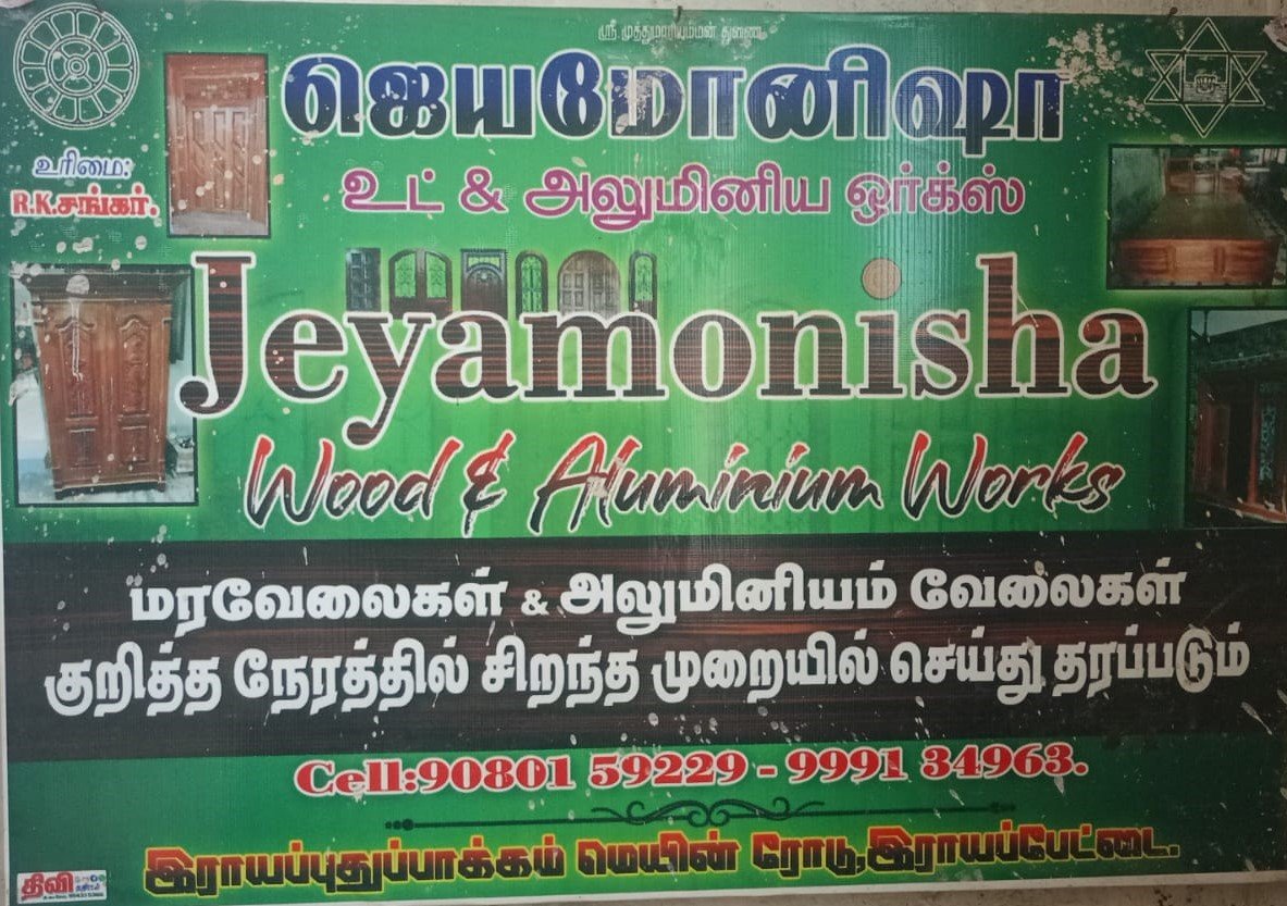 Jeyamonisha Wood & Aluminium Works is promoted by R.K.Sankar at Royapettah. We work hard to provide excellent customer service to all our clients.